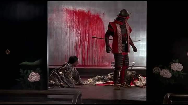 Saburo: I trebaš biti! Prolio si oceane krvi. Nisi pokazao milosrđe ili sažalijevanje. I mi smo djeca takvog vremena…. odviknuti osjećaja zbog svađe i kaosa. Mi smo tvoji sinovi, a ti (Vi) računaš na vjernost (tako odgojenih) sinova. U mojim očima to te čini budalom. Senilna stara budala!